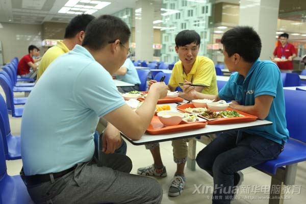 午餐,成了一天之中放松的時刻。這一刻仿佛又回到了學校,回到了安徽新華電腦專修學院那無比美好的時刻。