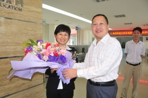 安徽新華電腦專修學院何貴金院長向老師們獻花