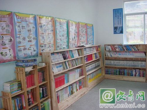 安徽新華電腦專修學院為白際小學捐贈的圖書閱覽室一角