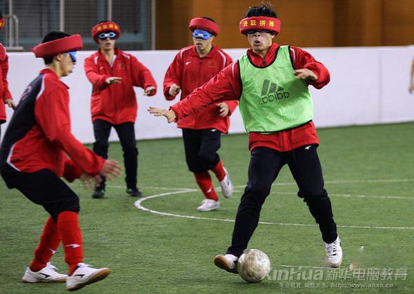二.道具要求:1個(gè)足球(要用含氣量不足的足球,這樣每踢一下,球不會(huì)滾得太遠(yuǎn))、蒙眼布。