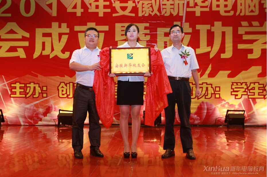 安徽新華電腦專修學院院長吳元紅與新華教育集團就業(yè)部部長袁種寶為校友會成立揭牌