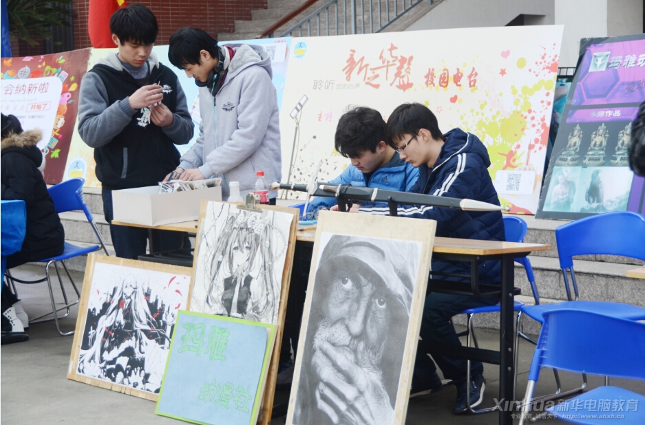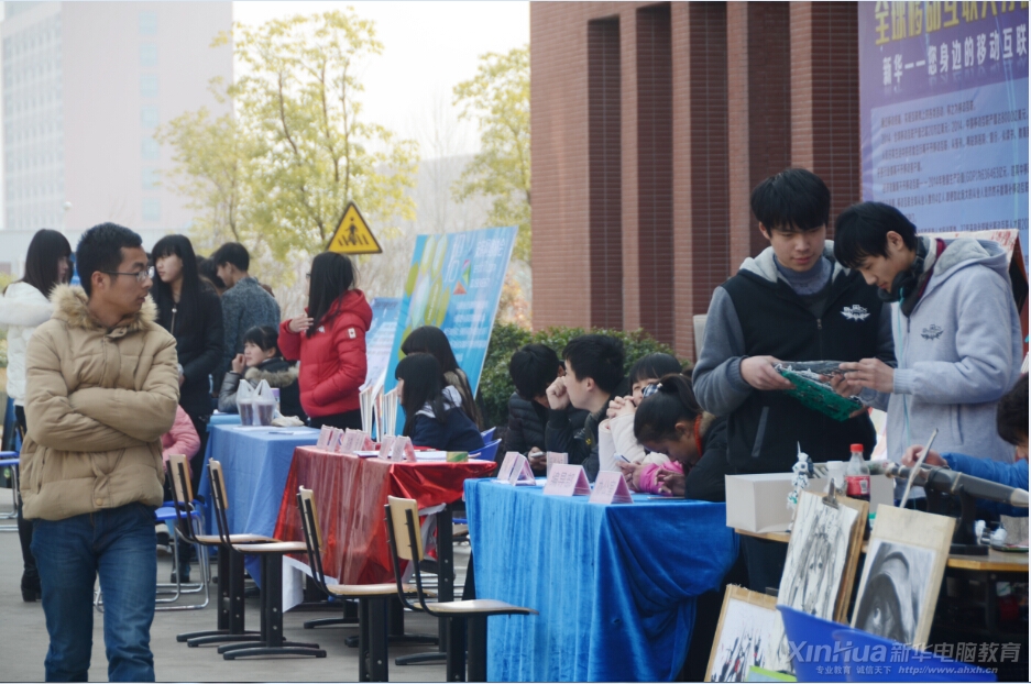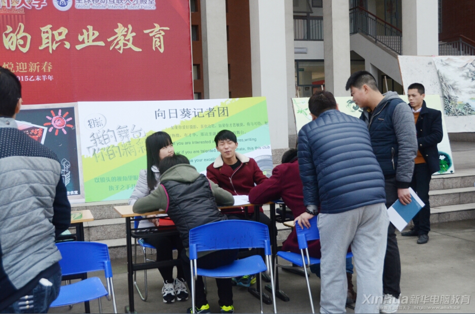 安徽新華電腦專修學院20多個學生社團統一設置招新點,上演一出比“武”招“新”、“百團大戰”的好戲。