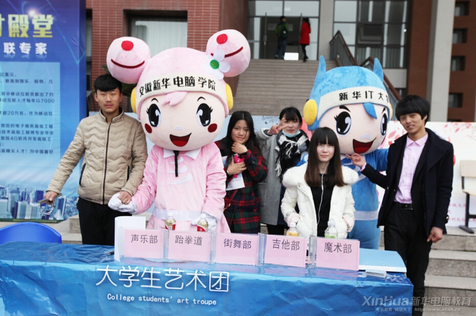 安徽新華電腦專修學院現有學生社團,分為學術文化類、社會實踐類、藝術娛樂類、科技創新類、愛心公益類、體育健身類等。近年來,我院始終堅持“各社有精品,周周有活動、人人都受益”的建設思路,學校社團活動豐富,社團成為育人教育的第二課堂。