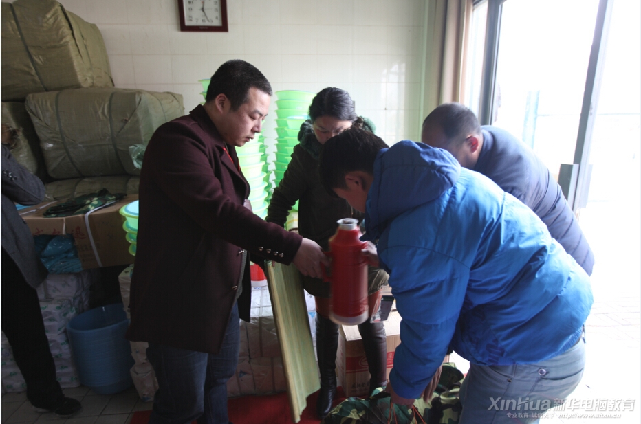 辦理完飯卡,王老師又馬不停蹄的帶領武振楊到倉庫領取生活用品