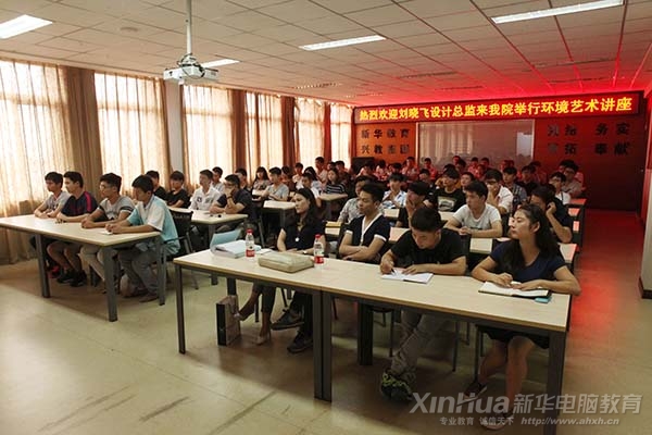 現場,劉曉飛先生更是鼓勵廣大新華學子樹立成為優秀設計師的目標,了解設計師工作流程和相關要求,以及如何靠“堅持,團隊和專業化”將未來的職業化道路順利走下去。劉曉飛先生用自己的實際案例帶領學子們了解更多環境藝術的專業知識,從項目概況到設計理念、空間理念和效果展示各個方面讓學子更直觀地帶入其中。劉曉飛先生更是創新性地提出“以立“異”來立“意”,文化共性與個性的關系協調和現代新東方風格等設計理念。最后,劉曉飛先生更是展示了詳細的原始結構,平面分析和布局展示,讓學子們驚嘆不已。