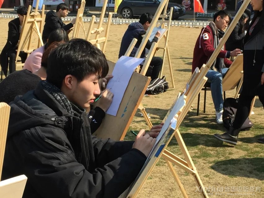 今天,陽光正好學院綜合樓前的草坪上滿滿的都是參賽同學和圍觀群眾。本次動漫人物手繪大賽要求熱愛動漫手繪的參賽者們以動漫人物為主題,參考提供的臨摹作品,室外現場作畫,時長為1小時30分,要求比例精準,造型美觀。