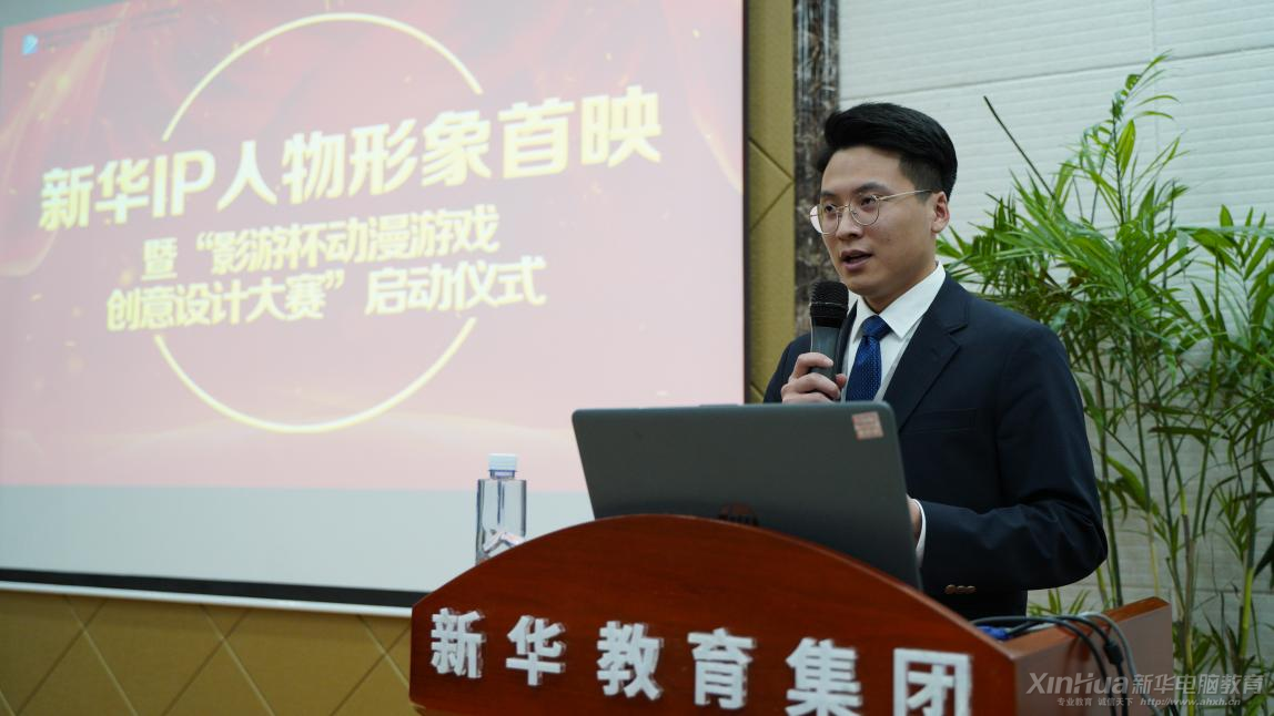 新華影視動漫IP人物形象因可愛的形象受到各位學生和老師的喜歡,所以本次首映儀式上,將IP形象銜接在“影游杯動漫游戲創意設計大賽”中,各位參賽者可根據參賽要求,圍繞我們IP人物制作3D角色或視頻、3D場景或視頻、游戲CG動畫、新媒體(以視頻拍攝為主)等形式參賽,具體可以咨詢指導老師。