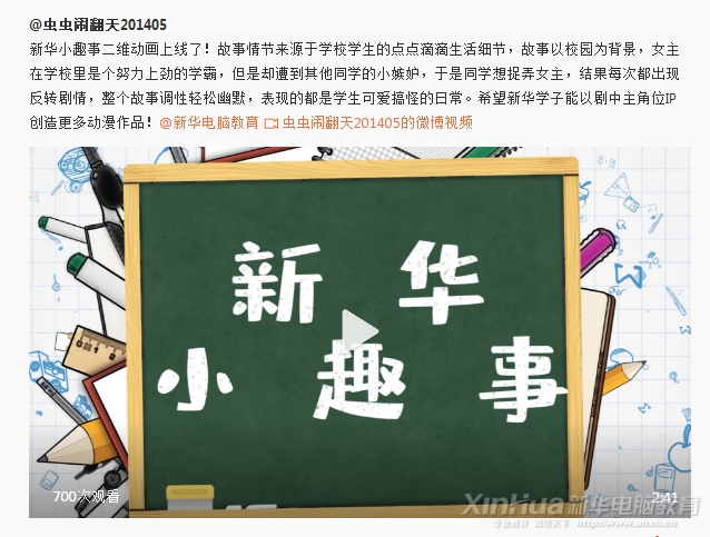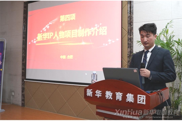 在本次新華IP人物形象首映上,完整的原版視頻《新華小趣事》也正式首映。現場主創指導老師汪艦從前期策劃、美術設計、動畫制作、音樂剪輯、I P 發布方面進行解讀,同時汪老師表示新華的學生參與了整個動畫的制作分解流程與創意設計。