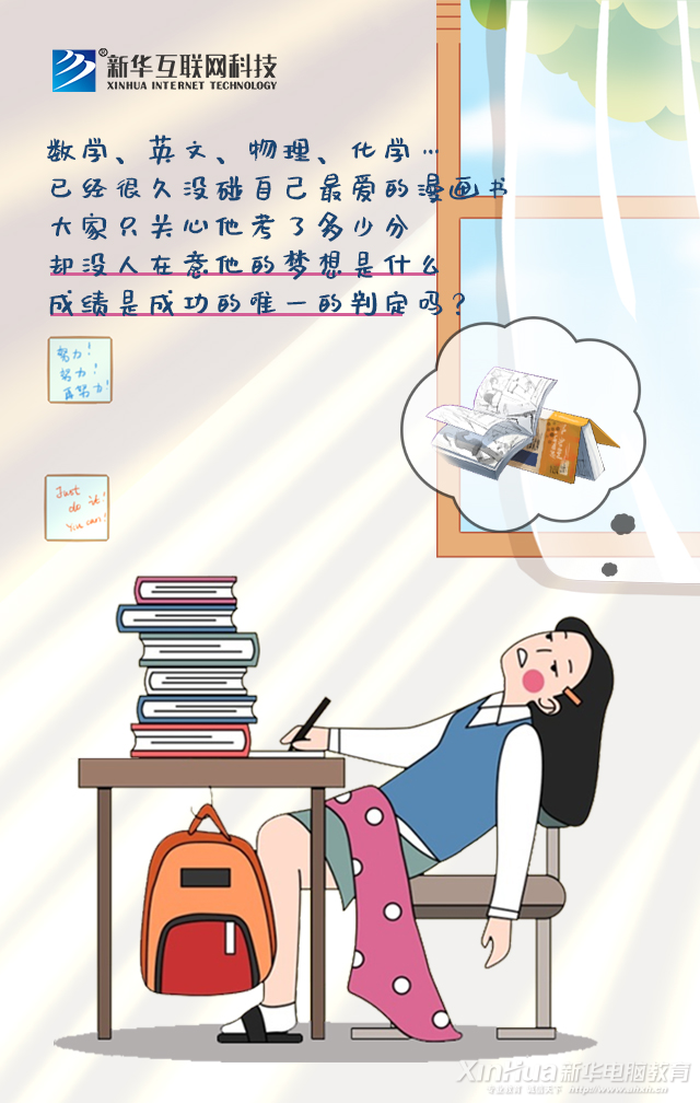 很多初高中生面對數學、英語、物理、化學等理論知識,學起來很吃力,跟不上進度,從而對學習失去興趣。而家長依舊在耳旁叮囑:“時間緊迫,學習才是現在的首要任務,其他興趣愛好先暫時放下,用心讀書才是最重要的!”還記得喜歡的漫畫書堆積在抽屜里有多久沒翻開了嗎?即使這樣,成績還是沒有提升,是沒努力嗎?不是!是不喜歡!家長從不在意孩子有何夢想,只關心考試的成績分數還有刺眼的排名,成績難道真的是成功的唯一評判標準嗎?