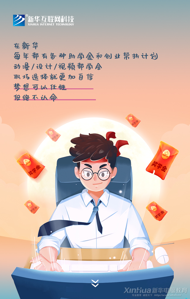 新華電腦學校緊跟時代潮流,開設動漫游戲設計專業課程,小班教學模式,從入門級基礎課到專業課,理論實訓相結合,以實戰為主,讓新華學子把愛好變成專業技能,在學習中找到樂趣,從而實現自己的夢想。不用再被人貼上標簽,被大人各種比較,專心做自己喜歡的事情,也可以小有成就。