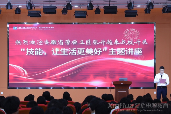 為全面展示技能讓生活更美好,在校園大力宣傳勞模精神、勞動精神、工匠精神,加強對廣大師生的榜樣教育,唱響“勞動光榮、技能寶貴、創(chuàng)造偉大”的時代主旋律。5月23日,我校特邀請安徽省勞動模范、合肥市勞動模范張開超來我校開展“技能,讓生活更美好”主題講座,近300名師生到場聆聽講座。