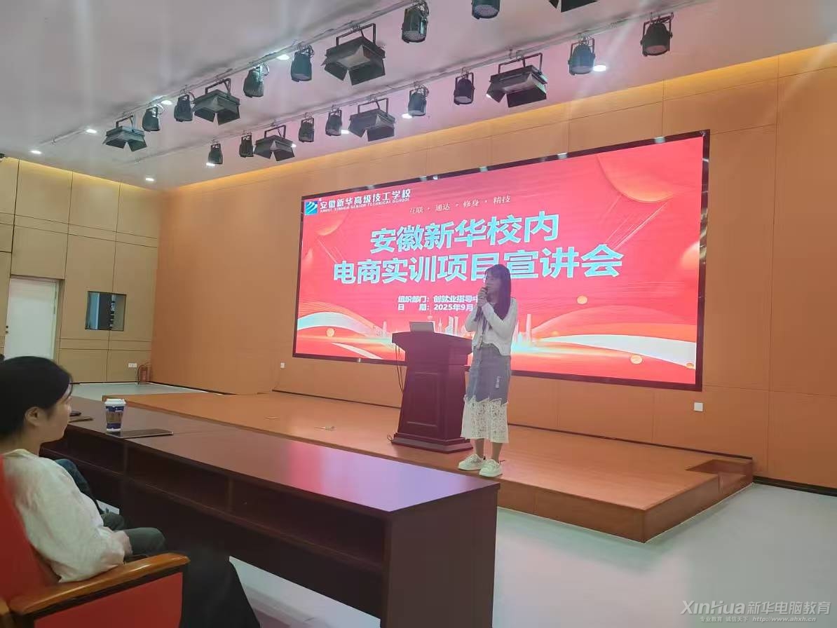 9月18日,安徽新華電腦學校聯合土星傳媒、合肥劇興網絡科技有限公司、上海智言迅智能科技有限公司,共同舉辦“電商產業人才實訓計劃”校企宣講會。活動吸引了300余名電子商務、數字媒體、市場營銷等專業學生參與,校企三方圍繞“實戰型電商人才培養”主題,深度解析行業趨勢、崗位需求及實訓模式,為學子搭建起直通職場的橋梁。