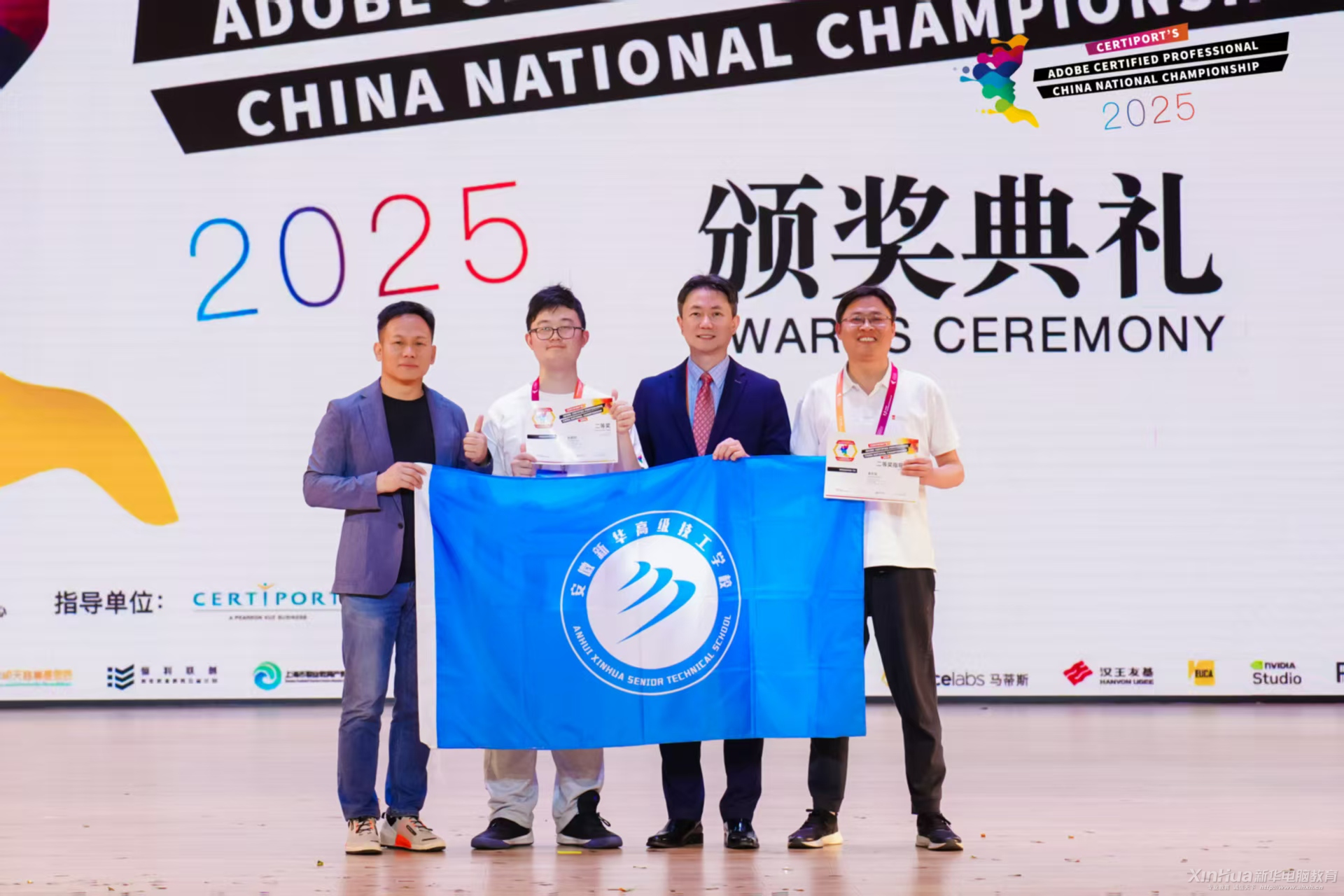 在這場高手云集的賽事中,安徽新華高級技工學校全媒體運營師專業的葛晨陽同學脫穎而出,一舉斬獲平面設計組二等獎的佳績,而他的指導老師單東軍也榮獲了優秀指導老師獎,師生攜手,共鑄輝煌!