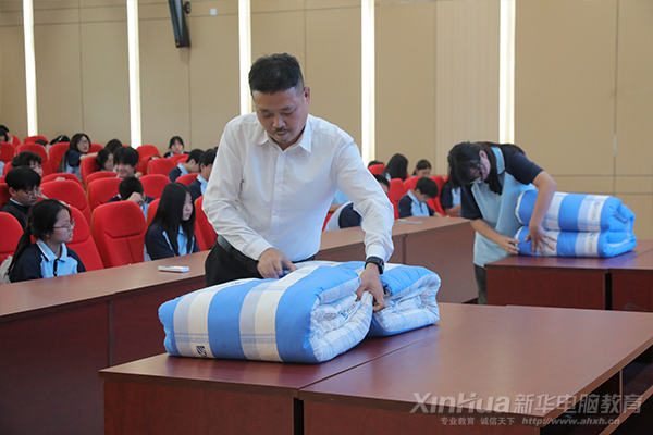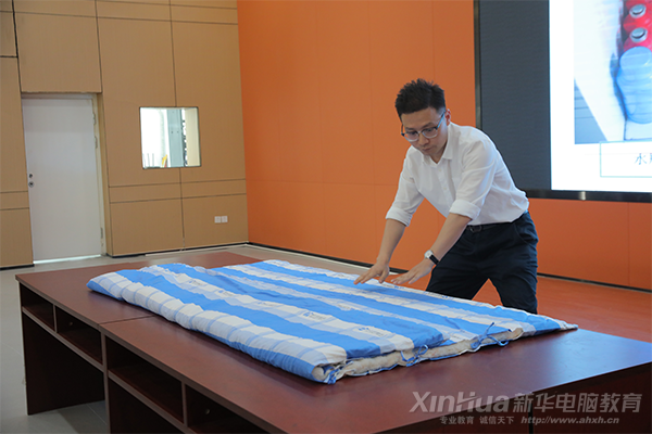 為強化新生內務管理能力,培養嚴謹細致的生活作風,安徽新華高級技工學校近日針對暑期預科班學生開展了疊軍被專項訓練活動。作為學校"三教三訓"育人體系的重要實踐環節,此次課程通過標準化示范與沉浸式體驗,為新生扣好校園生活的第一粒紐扣。