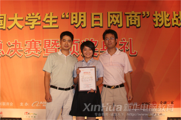 數(shù)月后,在總決賽上,汪云娟不僅獲得“明日網(wǎng)商”挑戰(zhàn)賽銅獎,還獲得 “校園十佳CEO”、“生活服務網(wǎng)絡經(jīng)紀人”大獎。記者采訪中,汪云娟欣喜地說:“盡管一分之差未能獲得銀獎,但我向幾十萬參賽大學生證明了新華的驕傲。”