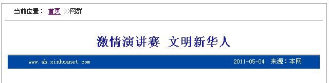 第一位上場(chǎng)的是一名女選手,她的滔滔不絕的演講贏得了評(píng)委老師們的一致稱贊。第二位選手以“我是新華人,文明伴我行”為主題,闡釋了作為一名新華學(xué)子,應(yīng)有義務(wù)有責(zé)任去維護(hù)去宣傳文明,做文明事。選手們的激情演講,將原本讓人感覺到淡而無(wú)味的演講變得津津有味,臺(tái)下掌聲如雷。