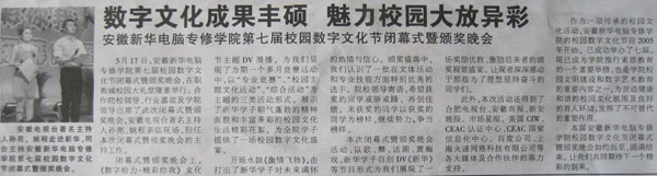 當前位置:首頁 > 新聞中心 > 青春新華 > 《安徽商報》報道:數字文化成果豐碩 魅力校園大放異彩