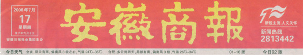 《安徽商報》報頭《安徽商報》報道新聞頁面截圖
