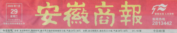 《安徽商報(bào)》報(bào)頭 《安徽商報(bào)》報(bào)道新聞頁(yè)面截圖
