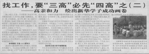 當前位置:首頁 > 新聞中心 > 青春新華 > 《合肥晚報》報道:找工作,要“三高”必先“四高”之二