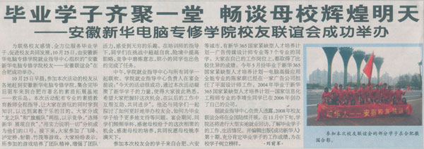 當前位置:首頁 > 新聞中心 > 青春新華 > 《合肥晚報》報道:安徽新華電腦專修學院校友聯誼會成功舉辦