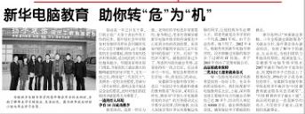 2月9日,《安徽商報》報道:“新華電腦教育 助你轉“危”為“機””,敬請關注!