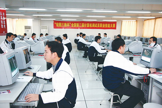 全國第二屆計算機調試員職業技能大賽緊張激勵的比賽現場
