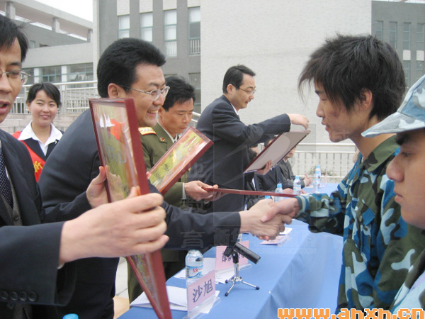 緊接著,院領導宣讀了學院對軍訓優秀標兵、標兵宿舍和優秀班級的表彰決定和名單,并對他們進行了頒獎,這是對參訓學員們十天付出努力的肯定和鼓舞,同學們紛紛表示,今后要把軍訓精神帶到生活和學習上去,踏踏實實的做好每一件事,成為優秀的新華學子。