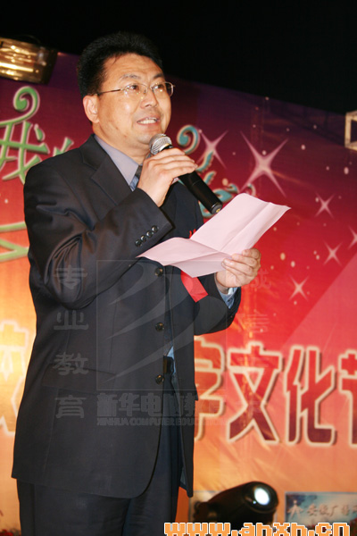 新華教育集團副總經理、安徽新華電腦專修學院院長沙旭在晚會上對本次文化節成功舉辦表示祝賀并給予高度評價,他說:“舉辦此次校園數字文化節,不僅是對同學們專業水平的一次展示,也是我院素質教育實力的一次大檢閱,希望全校師生繼續發揚數字文化節中體現出來的拼搏和創新精神,開創教育教學工作新局面!”