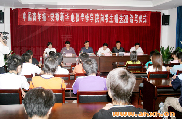 新華19年來始終積極投身社會公益事業,以實際行動回報社會。圖為新華電腦專修學院向考生贈送2B鉛筆。