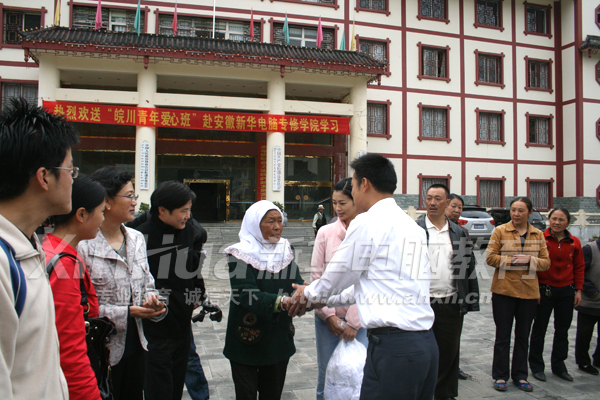 松潘縣縣委常委、統戰部部長、總工會主席鐵心蘭在歡送儀式上首先代表松潘縣對安徽人民的支持和援助表示衷心地感謝,對安徽新華電腦專修學院的愛心行動作出了高度評價。她說:“安徽新華電腦專修學院提供40名免費學電腦技能的名額。投入了巨大的人力和物力,這是一項偉大的育人工程。希望到合肥求學的學子要努力學習,不要辜負安徽人民和新華老師的一片心意,將來為家鄉建設貢獻自己的一份力量”。