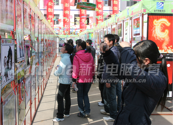 為讓所有學子都能學為所用、學有所成,安徽新華電腦專修學院每年都會舉辦一場大型數字藝術作品展,讓學子相互交流、學習。圖為新華學子觀看參展作品。