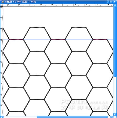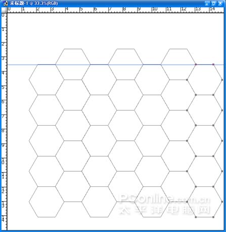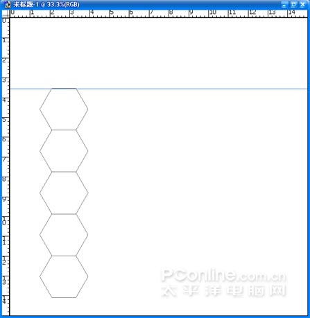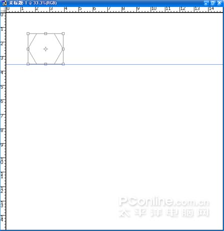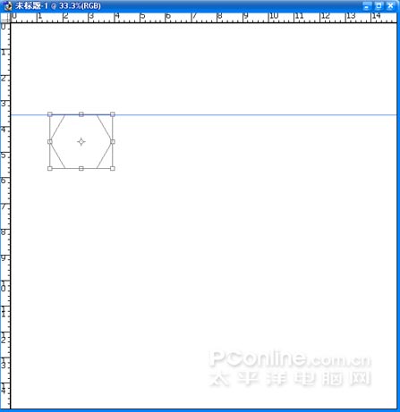 (2)用路徑形狀工具繪制正六邊行,執行CTRL+T,從標尺框中拉水平輔助線貼近形狀的下邊緣。