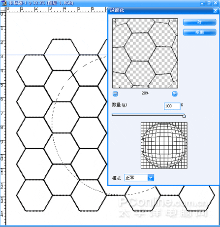 (14)在路徑面板中刪除路徑,對當前圖層進行濾鏡\扭曲\球面化操作,設置如圖。