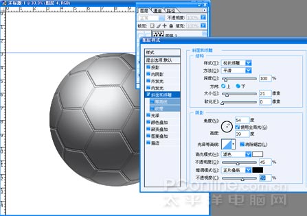 (16)使網格形狀圖層可見,按CTRL鍵點擊該層使之載入選區。回到球的圖層執行CTRL+J形成新的圖層。對新層進行圖層樣式操作,設置如圖。