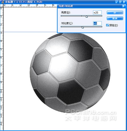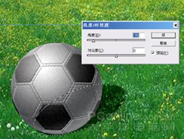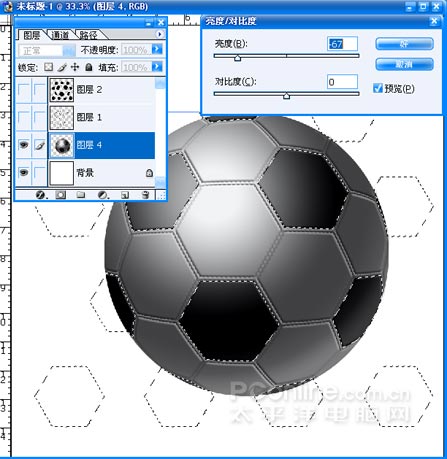 (17)把該層和球鏈接合并,按CTRL點擊黑色六邊形圖層使之載入選區,對球形進行亮度對比度設置,如圖。