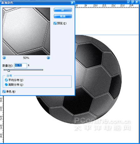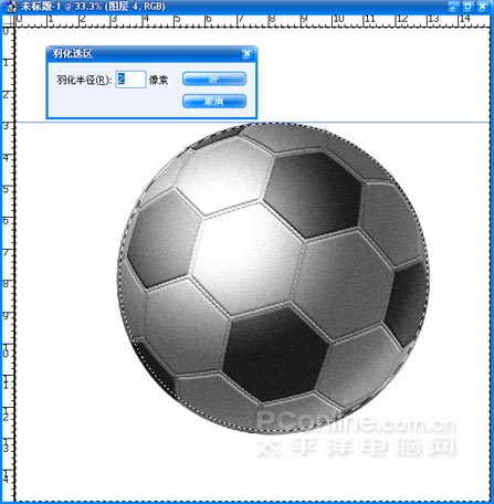(21)作一略小于球的選區,執行CTRL+SHIFT+I反選,執行CTRL+ALT+D羽化設置,按DELETE刪除多余部分。